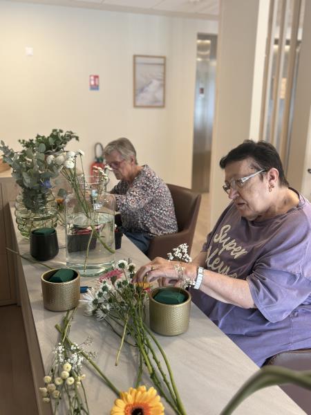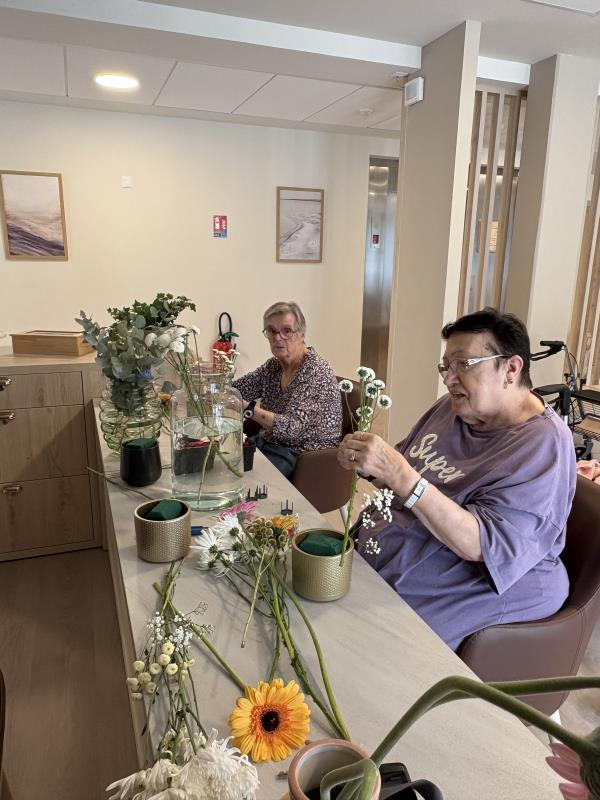 L’après-midi, place à la créativité ! Nous nous sommes toutes réunies autour d’un atelier de compositions florales. Entre échanges de conseils, rires et bonne humeur, de magnifiques bouquets colorés ont vu le jour, apportant une touche de fraîcheur et de poésie à la résidence.