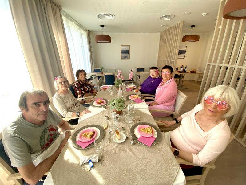 Chaque résident a joué le jeu avec enthousiasme — chapeaux, foulards, broches et rubans étaient au rendez-vous. L’ambiance était joyeuse, conviviale et pleine de bienveillance. 💗